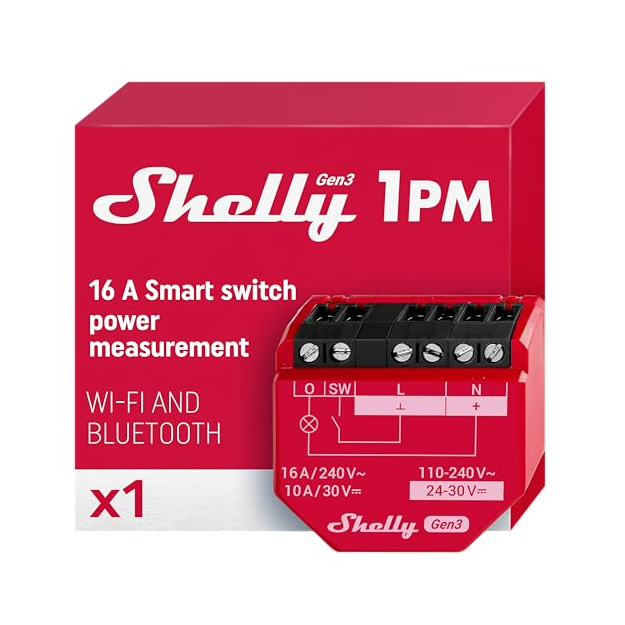 The Shelly 1PM Gen3 is a Wi-Fi-operated smart switch that provides remote control and precise power monitoring for your appliances. It also functions as a Bluetooth gateway, enhancing your smart home connectivity. With a quick, under-10-minute setup, you can automate your devices and manage them from anywhere. Its compact design fits behind most wall switches and sockets, making it an effortless retrofit for seamless integration into your existing smart home system.