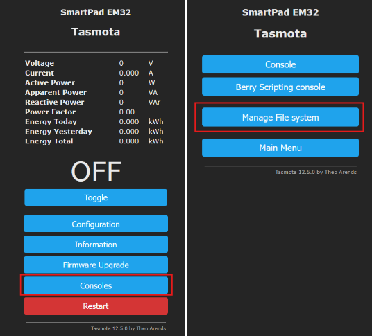 - Next update your device to Tasmota V 12.5 (this will be used to migrate to the safeboot partition scheme).