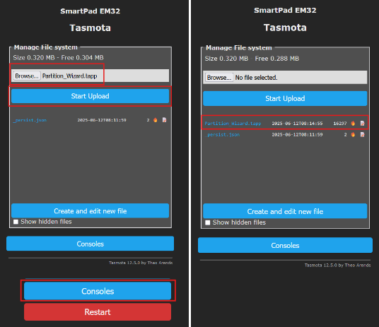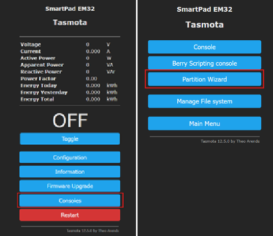 - Download the Partition Wizard Tapp File, and upload it to your device at https://github.com/arendst/Tasmota/raw/eb3de9c73a23e5559123dd85df70f844aaa46