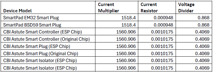Default Calibration Values (Check Your Device Model):